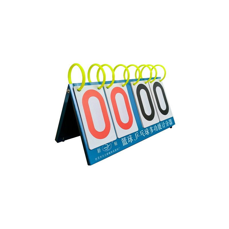 Табло спортивное на жестком металлическом каркасе с пластиковыми карточками на кольцах из ПВХ, на 4 цифры (по 2 цифры для каждой команды, при этом цифры для счета одной команды контрастного цвета в сравнении с цифрами для счета другой команды).